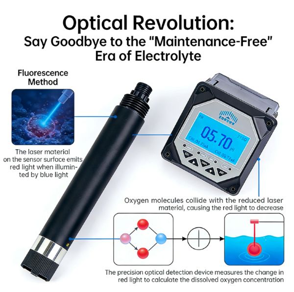 This optical principle delivers revolutionary advantages: no preheating, no electrolytes, and no flow rate requirements. Compared with traditional electrodes that demand frequent membrane replacement and electrolyte replenishment (reducing maintenance costs by approximately 50%), fluorescent sensors are truly low-maintenance and can even operate without calibration during their service life.