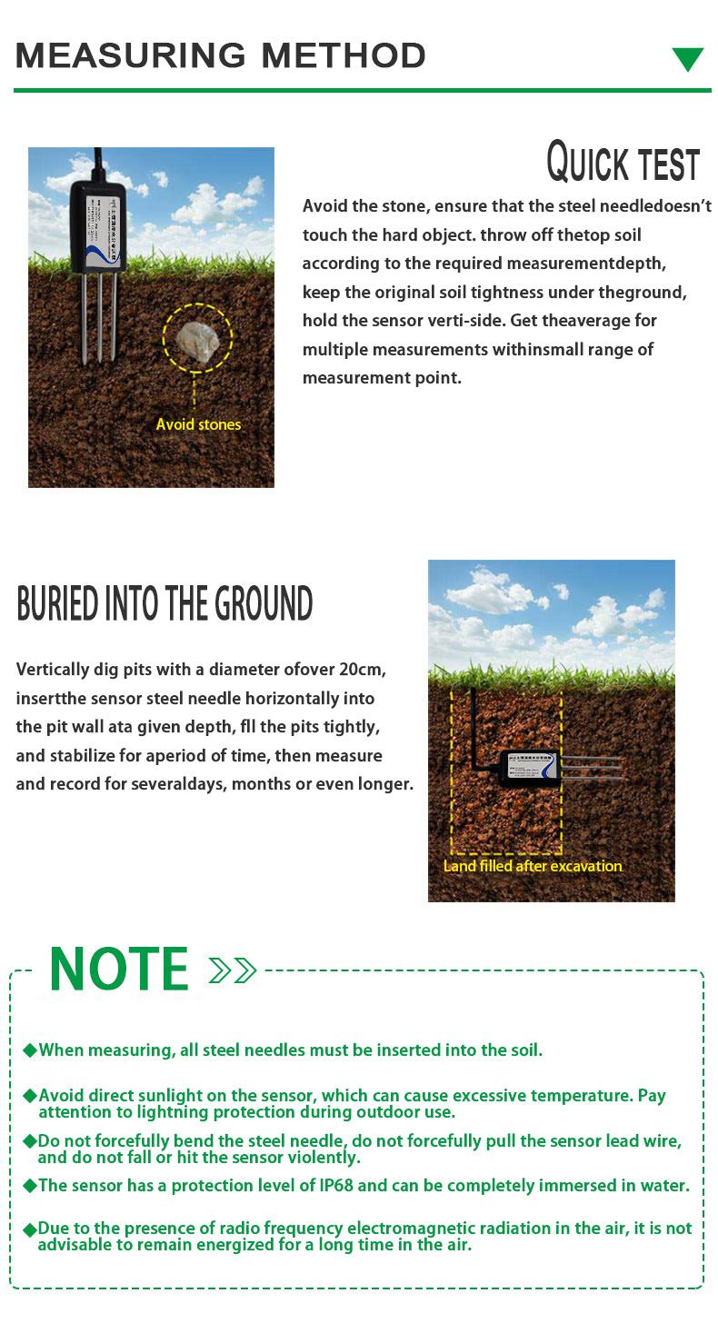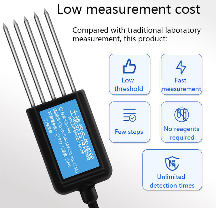 In addition to agriculture, this sensor is also widely used in horticultural planting and environmental monitoring scenarios. By continuously monitoring soil conditions, providing a suitable growth environment for horticultural plants and helping to improve crop quality; In environmental monitoring, it can be used for soil state analysis in ecological protection areas, maintaining ecological balance, and promoting sustainable development.