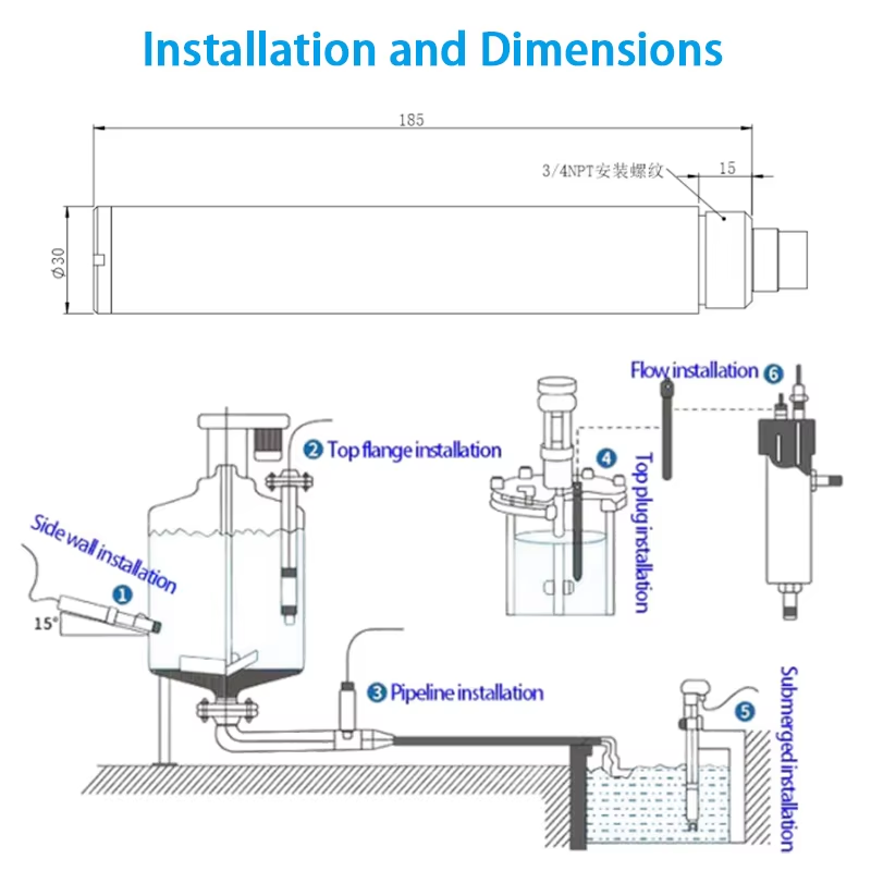 The ZW‑NHN‑PRA integrated online ammonia nitrogen sensor is designed for reliable and high‑performance water quality monitoring. Built with a sophisticated PVC membrane‑based ammonium ion‑selective electrode, it provides precise detection of ammonium ion concentration in water. Equipped with automatic temperature compensation, the sensor delivers consistently fast, straightforward, accurate and economical testing results for various water applications.