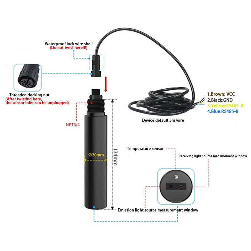 Adopts fluorescence detection technology: emits specific wavelength excitation light to stimulate phycocyanin (unique to cyanobacteria) to release characteristic fluorescence. Quantifies fluorescence intensity to accurately calculate cyanobacteria concentration, with effective differentiation from other algae. Built-in anti-interference algorithm and temperature compensation function reduce data errors caused by water turbidity, ambient light, and water temperature fluctuations.Communication: LoRaWAN low-power wide-area network technology, supporting long-distance wireless transmission (several kilometers coverage) for off-grid outdoor scenarios, reducing deployment costs; Protection: IP68 waterproof rating, made of corrosion-resistant materials for long-term submersion. Some models equipped with automatic cleaning brushes to prevent algae adhesion.