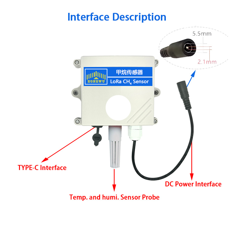 ZONEWU Based on LoRa spread spectrum modulation technology, terminals are capable of ultra long distance communication. A wireless monitoring device that integrates data collection, monitoring, and transmission. This product is equipped with a methane (CH4) sensor and a temperature and humidity sensor. The use of non dispersive infrared (NDIR) principle for detecting methane gas in the air has good selectivity and is oxygen independent. This sensor is equipped with emergency reporting of data anomalies, and can proactively report anomalies based on pre-set threshold values according to the on-site environment. It supports standard LoRaWAN protocol and TDMA networking protocol for ad hoc networks.